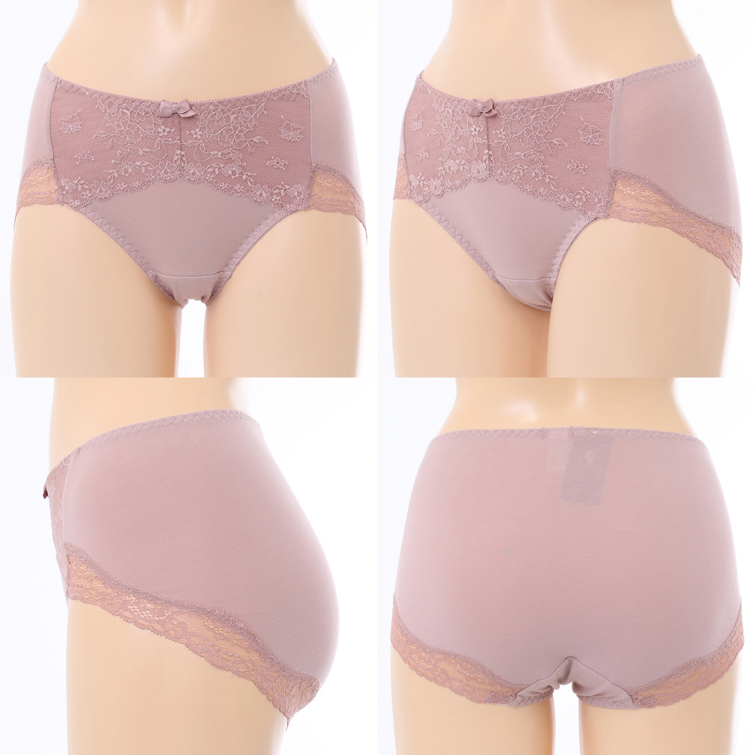위생적이고 신축성이 좋은 면스판 소재와 여성스런 레 이스를 사용한 레이스 힙팬티로