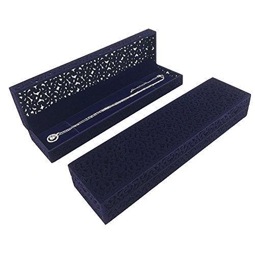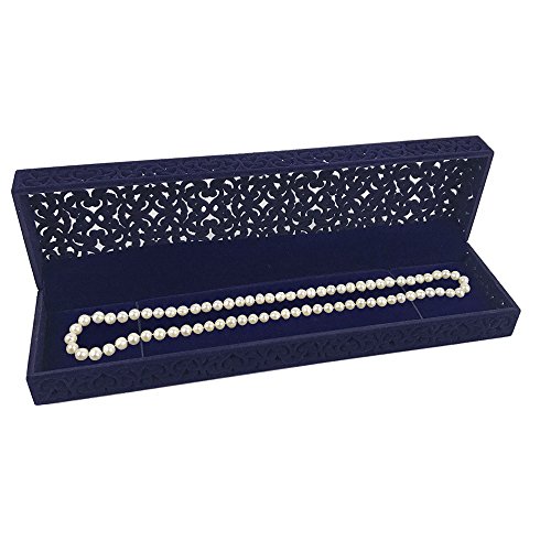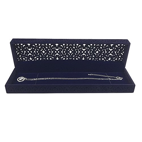 Hollow Sapphire Blue Velvet Necklace Box - Long Chain Necklace Storage Case Jewelry Packaging Gift Box