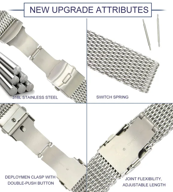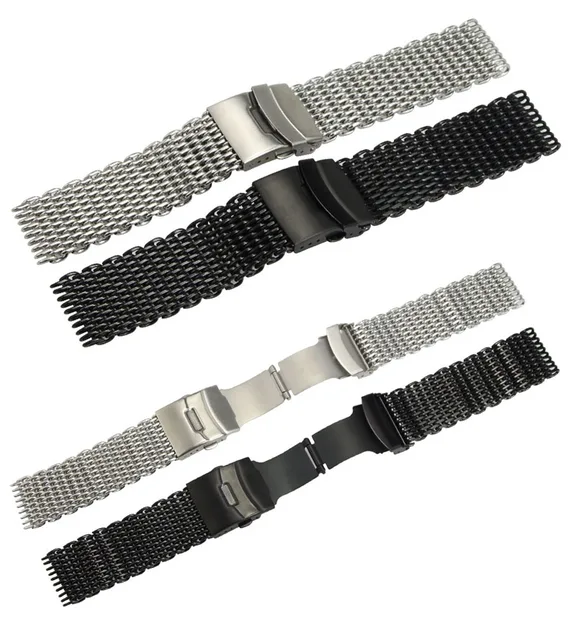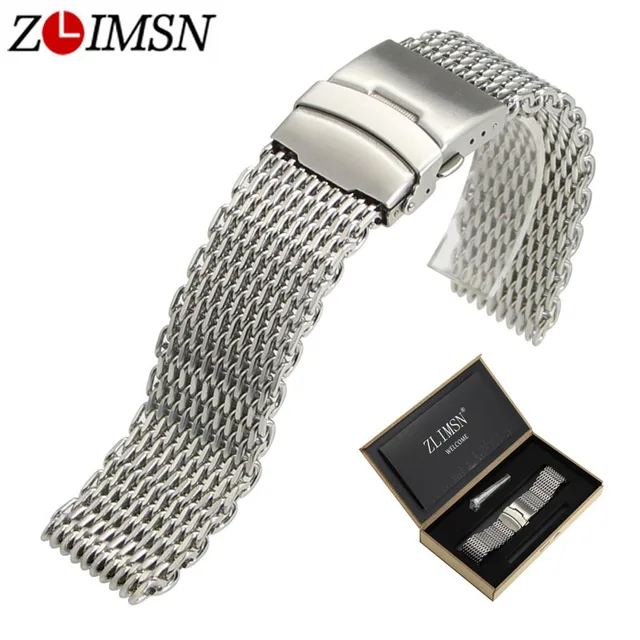 | [해외] ZLIMSN 남성 시계 밴드 Milanese 스테인레스 스틸 메쉬 스포츠 팔찌 실버 블랙 더블 푸시 버튼 배포 버클 22 24 미리메터 |