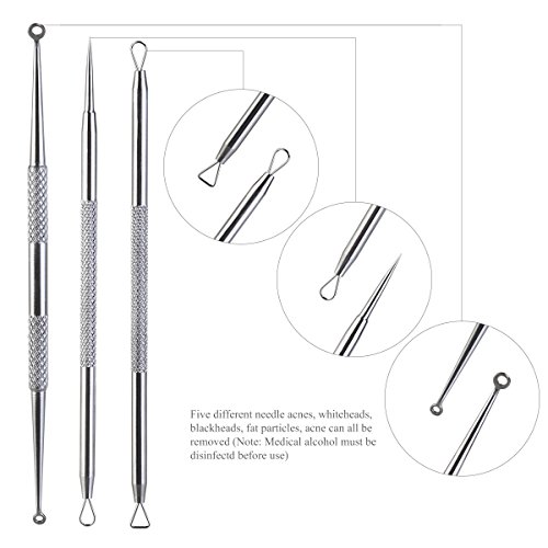 Blackhead comedone extractor Kit includes professional instructions to show you the correct use of the five different tools. Used correctly, these tools allow you to remove even deeper pimples without pain or scarring.