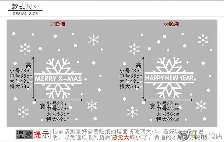 圣诞节装饰品白色雪花店铺玻璃门窗户橱窗布置贴花圣诞节装饰贴纸