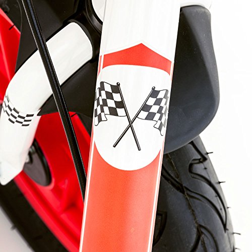 Racing Design: Die Farben rot, schwarz und weiss sorgen Fur Den richtigen Look und sind daher eIn echter Hingucker. Die gesamte Gestaltung ist so ausgelegt, dass unser Laufrad Jungen und Madchen gleichermassen begeistert