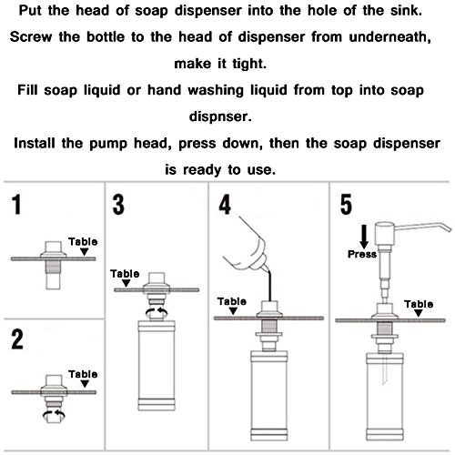 4, BSLINO Sink Soap Dispenser: extremely easy to install in just a few short minutes. And simply remove the dispenser head and refill with liquid soap-need not remove the bottle