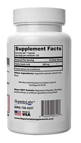 #1 Alpha Lipoic Acid - Powerful 600mg, 4 MONTH SUPPLY 120 Capsules – Formulated and Manufactured in USA – 100% Money Back Guarantee