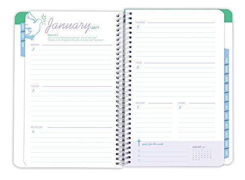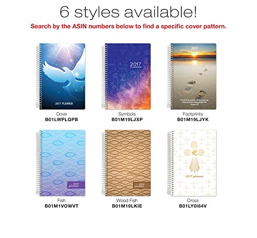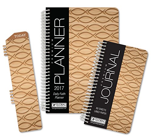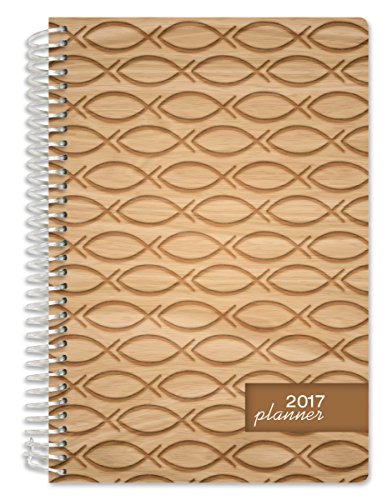 Christian Faith Daily Planner Set - 2017 Calendar Year (5.5" x 8") with Monthly Tabs (+) Bonus Clip-in Bookmark (+) 3.5" x 6.5" Bonus Journal [Wood Fish Pattern]