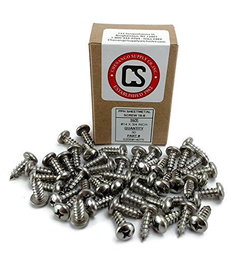 #14 X 3/4" Stainless Phillips Pan Head Sheetmetal Screw (1/2" to 2-1/2" in Listing) 50 Sheet Metal Screws (#14 X 3/4")