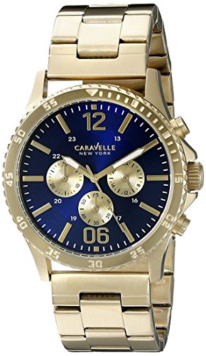-. Feature : Caravelle new York men's stainless steel gold tone bracelet / Chronograph function / Quartz Movement / Case Diameter: 44mm / Water Resistant To 99 Feet