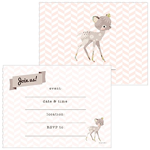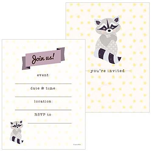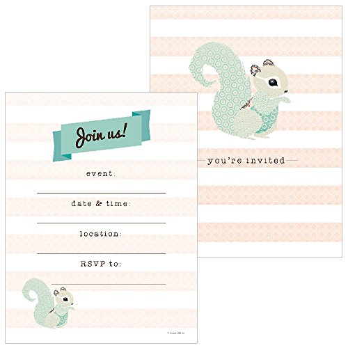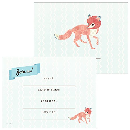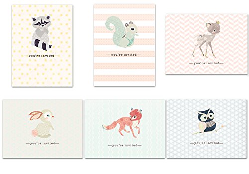 Party Invitations - Woodland Animals Set - 36 Invites - Kraft Envelopes Included