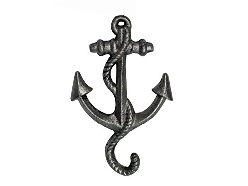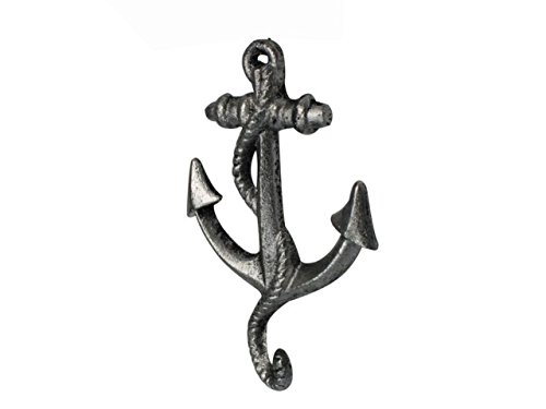 Hampton Nautical Rustic Silver Decorative Cast Iron Anchor Wall Hook 5" - Rustic Wall Art - Vintage Wall Decor