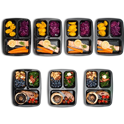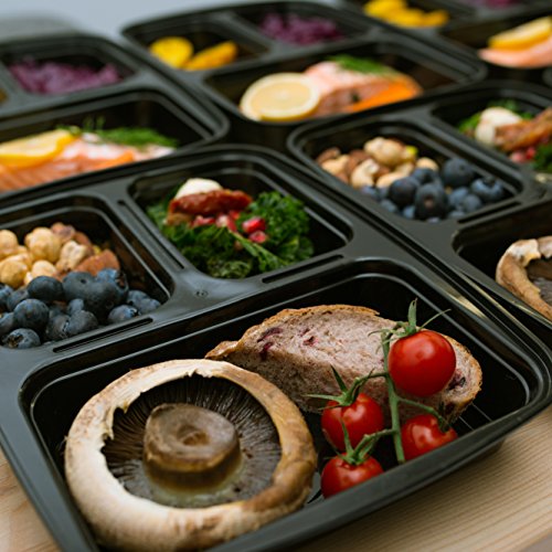 REDUCE MEAL PREP TIME AND SAVE MONEY - These plastic food containers with lids are ideal for daily meal prep. Each 36oz container has 3 separate compartments (18oz, 9oz, 9oz) to help you keep a variety of foods apart. Whatever your goals, whether it's to lose weight, add muscle or simply save money, these trays offer the perfect solution!