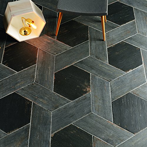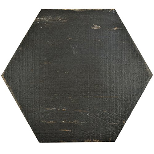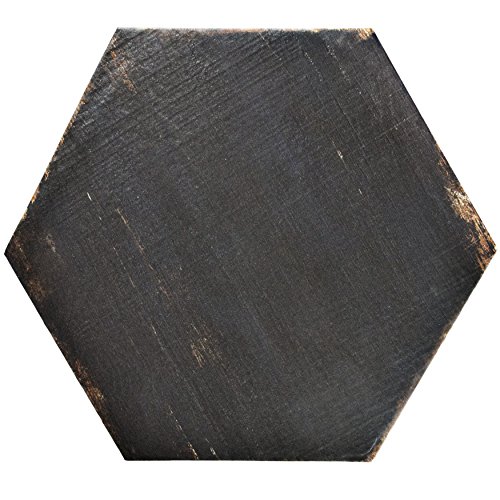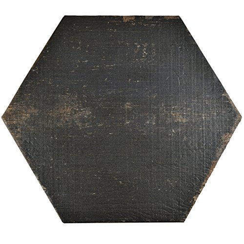 SomerTile FNURTXNG Vintage Hex Porcelain Floor and Wall Tile, 14.125" x 16.25", Black/Brown
