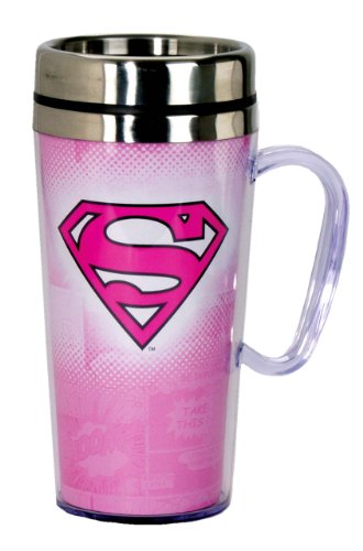 DC Comics Superman Pink Logo Insulated Travel Mug, Pink