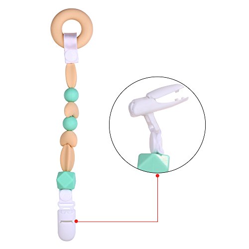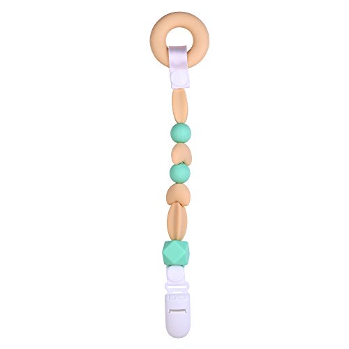 MyBoo Pacifier Clip with Teething Ring - Beige and Soft Green