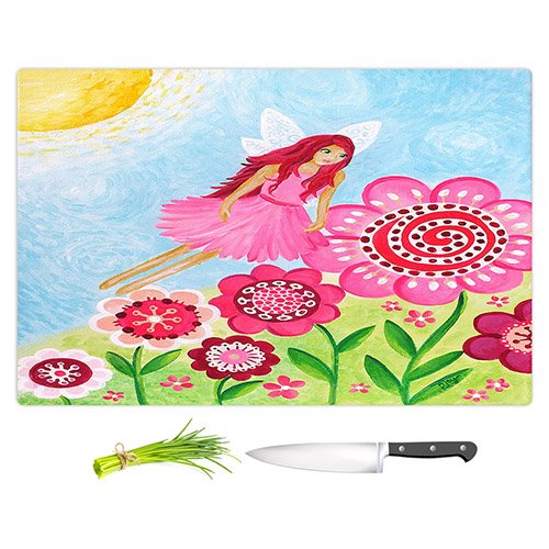 DiaNoche Designs CB-nJoyArtPinkFlowerFairy2 Njoy Art-Pink Flower Fairy Cutting Boards from, Large 15" x 11"