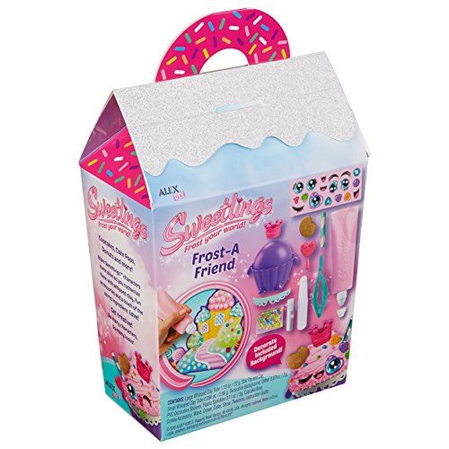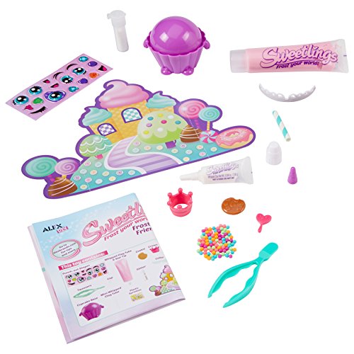 ALEX DIY Sweetlings Frost-A-Friend HER MAJESTling comes with everything you need to Frost Your World and bring an adorable Sweetlings character to life! Use whipped clay icing to frost a plastic cupcake and add some accessories to create a one-of-a-kind Sweetlings look. The tube of whipped clay icing has a star shaped decorating tip and cap and can also be used to decorate the included background. Create HER MAJESTling the benevolent ruler of the Sweetlings who proclaims “Go forth and decorate!” Includes Large Whipped Clay Tube (1.3oz/32g), Star Tip and Cap, Small Whipped Clay Tube (0.94oz/2.66g), Decorative Background, Glitter (0.7oz/2g), PVC Decorative Stickers, Plastic Sprinkles (0.11oz/3g), Cupcake Base, Accessories (Cookie, Wand, Crown, Collar, Straw), Tweezers and Instructions. Recommended for children 6 years of age and older.Feature