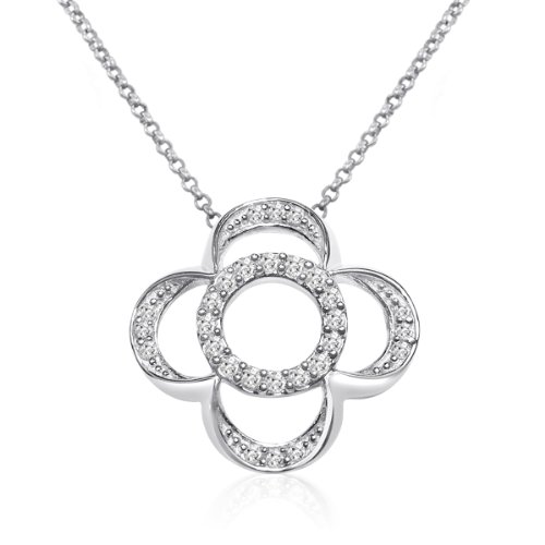 -. Title : 1/4 CTTW Diamond Flower Pendant in 10K White Gold