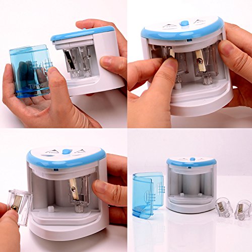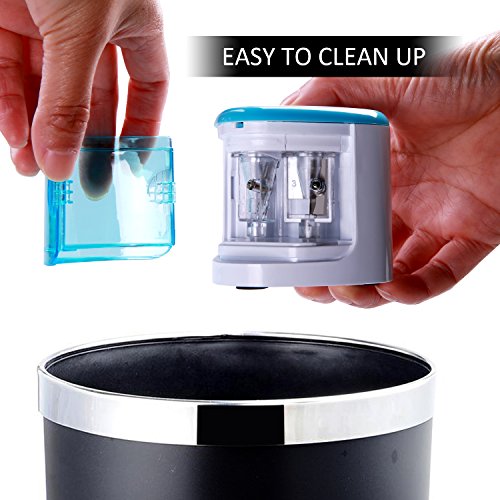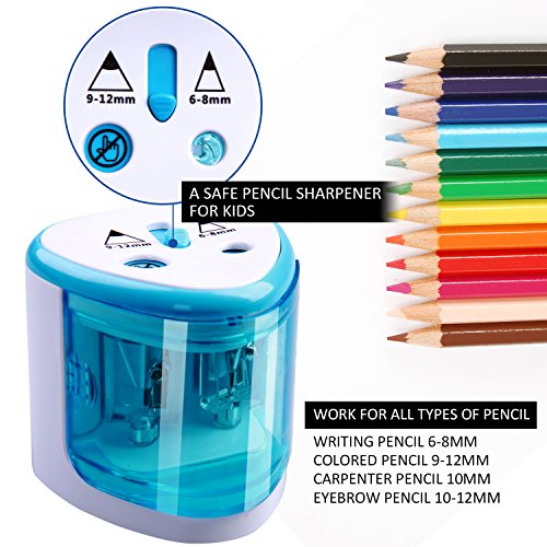 DOUBLE HOLE DESIGN FOR 6mm~12mm PENCILS: The Electric Pencil Sharpener is Good for regular and painting pencil. Featuring two separate holes for different pencil diameters: 6-8 mm and 9-12mm; professional desktop design with powerful motor featuring two separate holes for different pencil diameters.
