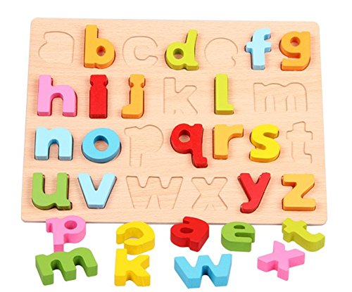 -. Feature : High quality wooden alphabet puzzle board. 12*9 inches. / Great learning toy,including 26 lowercase letters to fit into a wooden puzzle board. / Can help to learn 26 letters and colors. / Recommended for children aged 3-6 years old. / Non-toxic finishes and child safe materials.