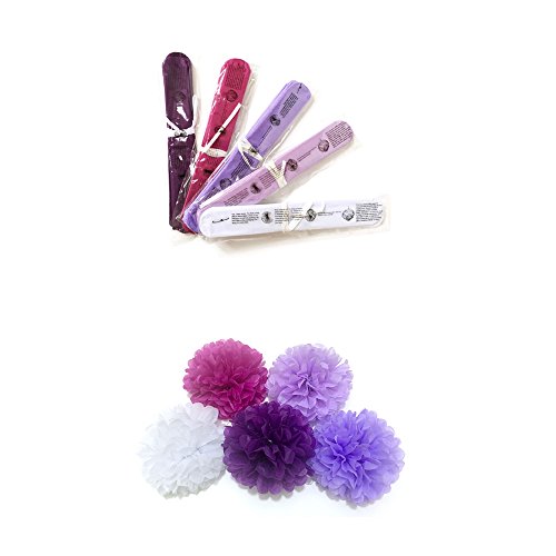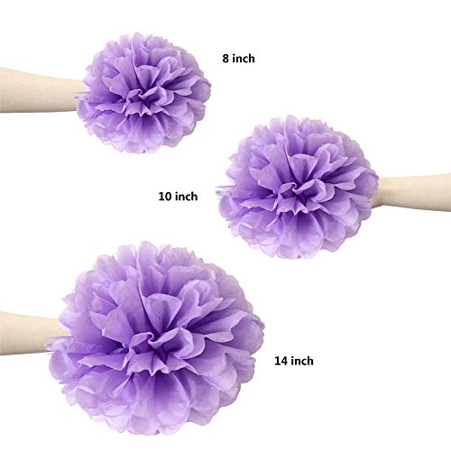 Tissue Paper Pom Pom Paper Flower Ball For Party Decoration and Celebration - 15 Pcs of 8, 10, 14 Inch (PURPLE)