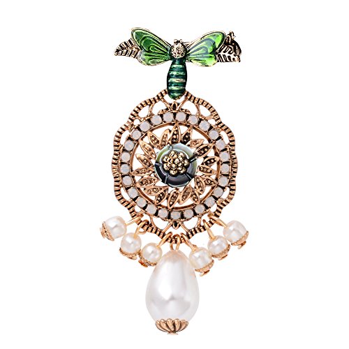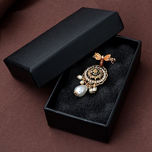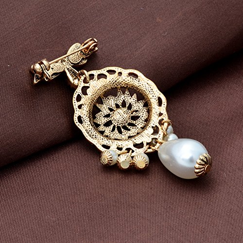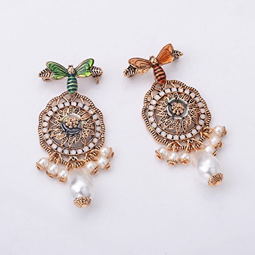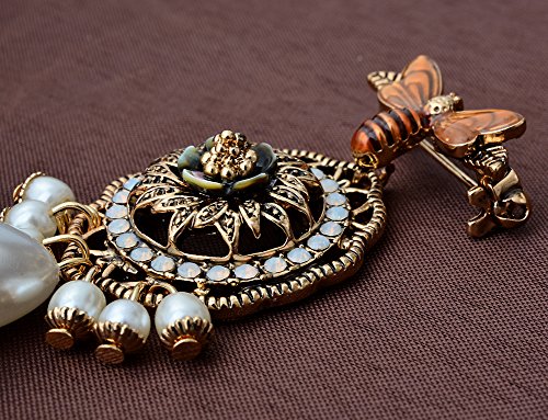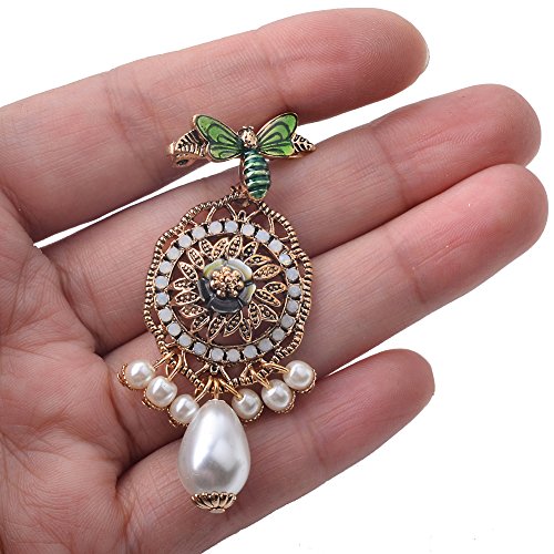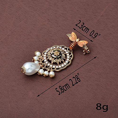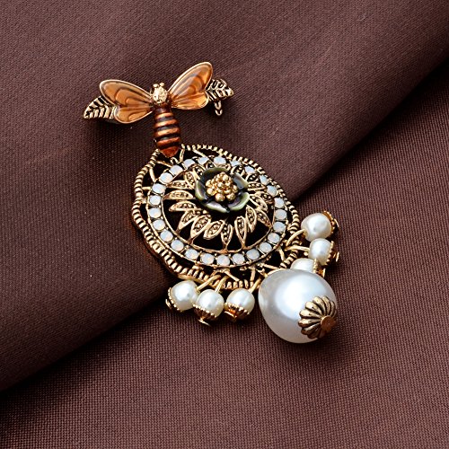 -. Title : Vintage Retro Gold Tone Bee Brooch Pin with Faux Pearls Pendant