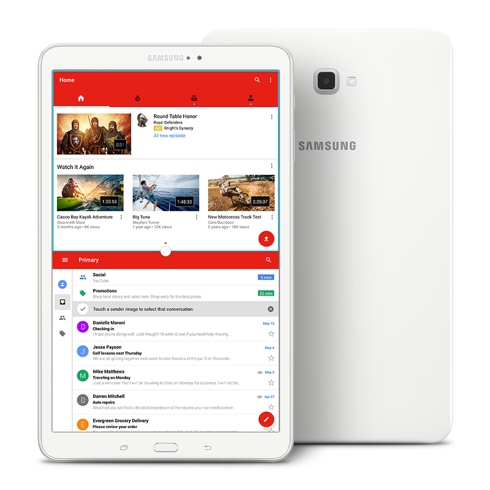 The Galaxy Tab A offers a Multi Window feature that lets you open two applications side by side (7), so you can get more done. Browse pictures while shopping online or chat with friends while watching your favorite shows.