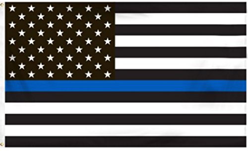Thin Blue Line American Flag - 3 by 5 Foot Flag Honoring our Men and Women of Law Enforcement- Black, White, and Blue with Brass Grommets