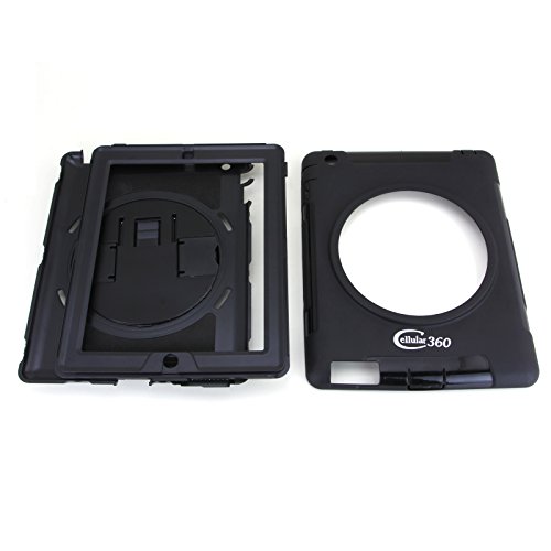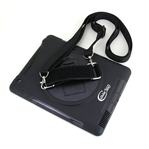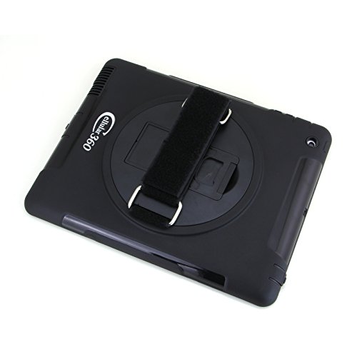 Cellular360 Apple iPad 2 iPad 3 iPad 4 Rugged Shockproof Case / Headrest Mount Holder with a 360 Degree Swivel Kickstand, a Hand Grip Belt and a Neck Strap (Black)