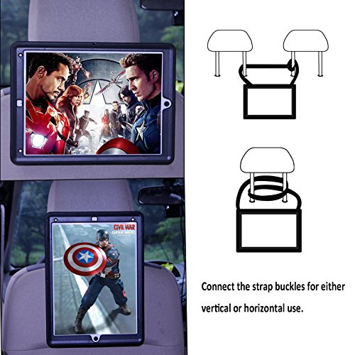 Adjustable shoulder strap lets you take your iPad with you on-the-go and allows you to display your tablet behind one seat for personal viewing or between two seats for shared viewing