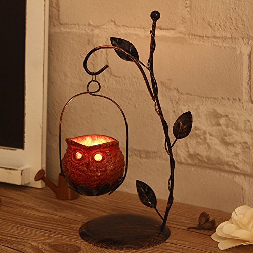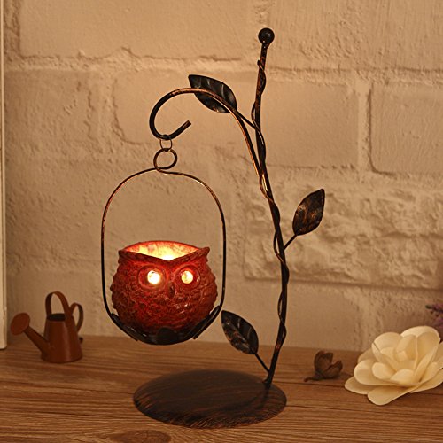 CHICHIC Candle Holders Candleholder Stand Flickering Tea Light Vintage Resin Owl Ornamental Vine Leaf C Vintage Resin Owl Candle Holders
