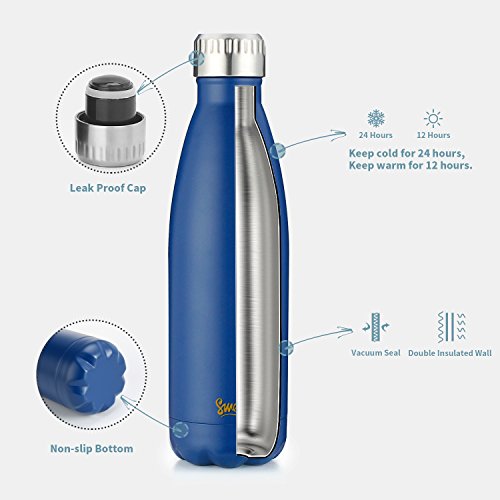 PREMIUM 18/8 STAINLESS STEEL Sweese insulated water bottles are made of food grade 18/8 stainless steel, a high quality and BPA free material, which won't leave a bad metal taste in your mouth and meanwhile make you drink more water than before!