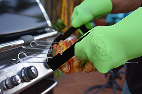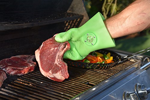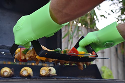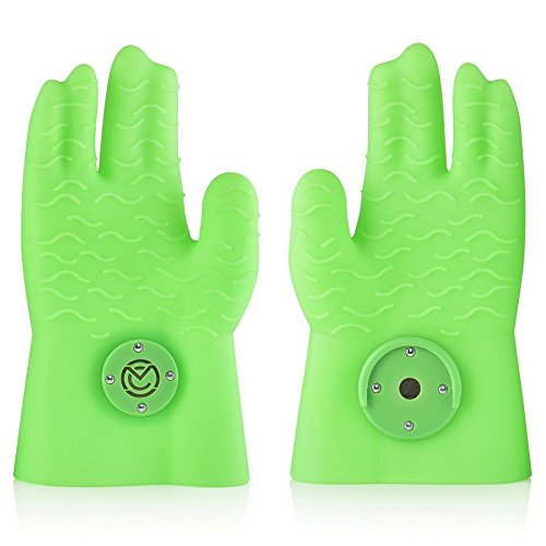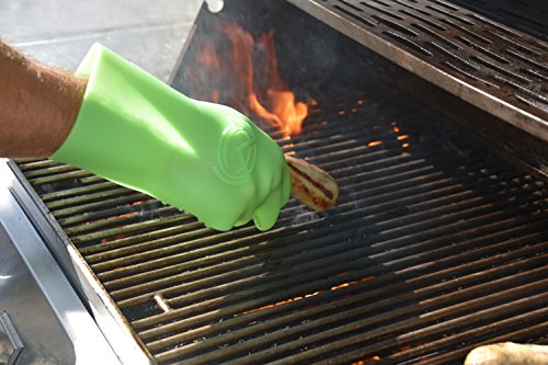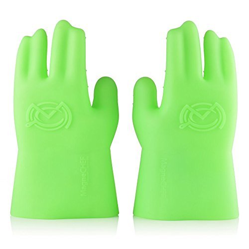 MagneChef Ez On-Ez Off BBQ Magnet Glove/Mitt Patented; Glow in the dark; Grip Waves, Heat/ Water Resistant, Food Grade Silicone Cooking Glove Grilling, Frying, Baking, Smoking, Dishwasher Safe-- Green