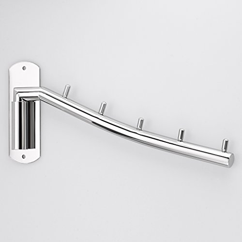 Sumnacon Wall Mounted Clothes Hanger Rack, Stainless Steel Garment Hooks with Swing Arm Holder, Space Saver Coat Robe Storage Organizer for Laundry Room Bedrooms, Clothing Drying Rack with 5 Hooks