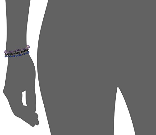 -. Title : Genuine Lapis, African Amethyst Gemstone and 18k Yellow Gold Plated Bronze Bead Bracelet, 6.5"