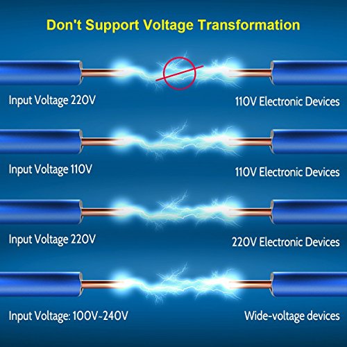 - CERTIFIED - Our FCC CE and RoHS Certified safety system with safety shutter, plug lock and 6.0 Amp fuse ensures complete protection for you and your devices (100V - 240V input voltage, 660 Watt. max. at 110V, 1380 Watt. max. at 230V, does not support voltage transformation). Please DO NOT use it with any high power appliances such as hair dryer, straightener as their power more than adapter overlaod