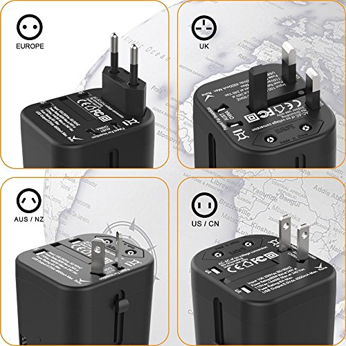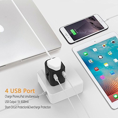 Foval Universal International Power Travel Adapter with 4.5A 4 USB Charging Ports and AC Wall Outlet Plugs for UK Italy AU Europe Asia etc More Than 150 Countries over The World