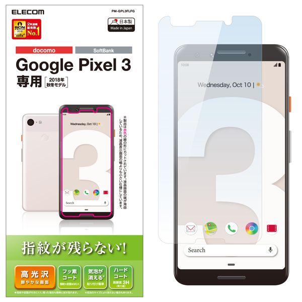 ●Pixel 3の液晶画面をキズや汚れから守る、指紋防止タイプの高光沢フィルムです。