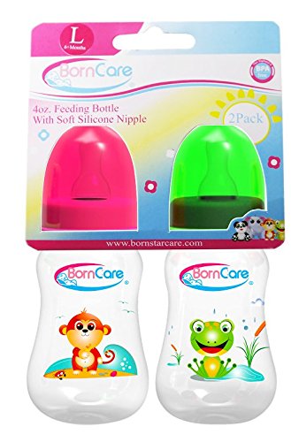 -. Title : BornCare Feeding Bottle Regular Easy grip with Silicone Nipple Fast Flow, 6+ Months, 4 oz., 2 Piece
