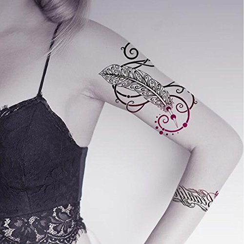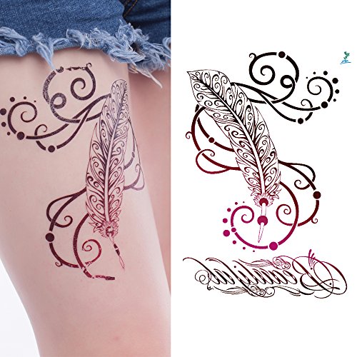 Yeeech Temporary Tattoos Sticker Sexy Feather for Women Waterproof