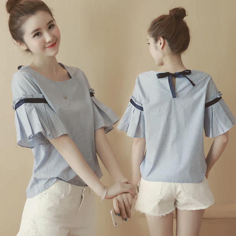 | 名称 | 清新竖条纹系带圆领短袖衬衫自制 |