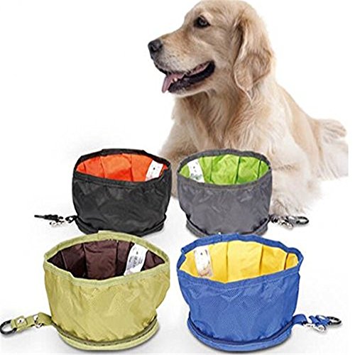 Product manual: Product Name: portable collapsible water bowl pet dog Specifications: sized diameter: 19CM, height: 9.5CM water capacity: 1000ML Material: Polyester Color: 4 colors: black, gray, blue, green Product Weight: 0.04 KG Description: Twill designed to meet the different ways of hanging. Waterproof material, can be filled with water and pet food. Foldable, easy to carry. Features: Collapsible Pet Bowl is made of durable fabric and can be fold. Waterproof interior to hold liquids. It can be designed in collapsible models for easy storage, water proof cloth designs which fold to compact items so they are small and don't take up as much space as a large water bowl would . perfect for traveling and outings. Fold Pet Bowl has clip/key ring designed to be hooked to a backpack so you always have it for easy carrying Give food/water anytime, any where . Pet Water Bowls for Car Trips. 0 |
