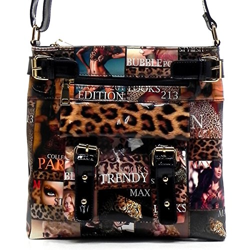-. Title : Glossy Magazine Cover Collage Belted Cross Body Bag Shoulder Bag