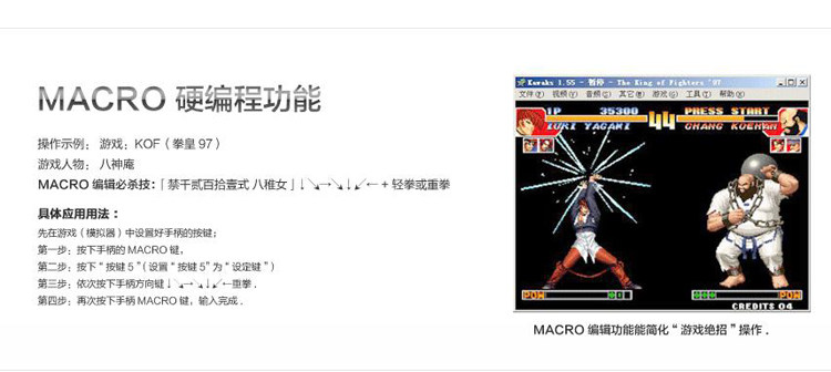 The North small handle 2 professional level human game controller and thehardware programming (Macro) + (Turbo) function of in quick succession ismake up for the deficiency of the two direction joystick let the game player inthe network game is stand-alone game is do as one pleases. Here the author used Dungeon Fighter Online DNF and the king of fighters as test game.
