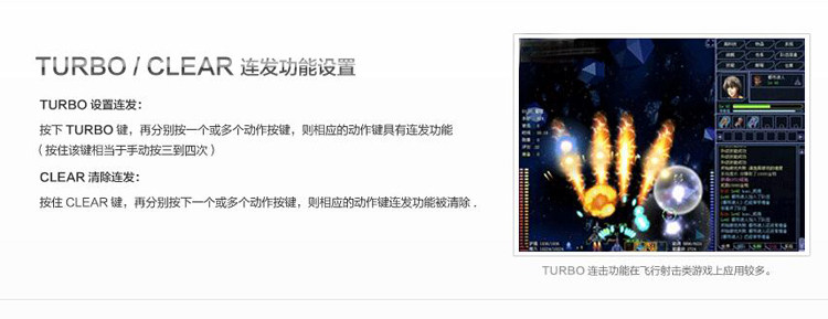 Set the fire: hold down the TUBRO key and then press the one or more motion key the corresponding action keys with repeating function (press the action key will continuously send action);
