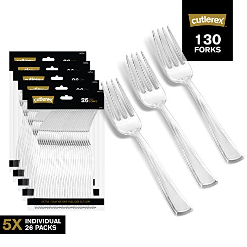 ---SET THE TABLE, SET THE MOOD!--- Throw a bash of an event. CUTLEREX is here to assist you!! Providing the Clear look and feel of stainless steel flatware at a fraction of the cost, CUTLEREX creates plastic silverware that looks real! CUTLEREX Clear plastic cutlery is disposable, so you won't have to waste any extra time washing large quantities of dishes. Despite being designed to throw away, this Clear plastic cutlery features the heavyweight design that is expected of traditional silverware. The sturdy construction helps limit bending, breaking, or snapping. With help from the sleek design along the flatware's handle, you can provide your table setting with some upscale style. The attractive appearance makes it ideal for elegant dining environments such as weddings, parties, and catered events! ---PRODUCT FEATURES--- ★Great for catered weddings, receptions, and parties ★Value Pack 130 Clear Forks ★Unique, formal alternative to traditional disposable cutlery ★Features a shiny Clear finish ★Heavy weight construction prevents breakage, bending, and snapping ★Elegant sleek handle ★Disposable for quick clean up "These were perfect for a baby shower. I didn't want to rent cutlery, and didn't want to use the white plastic kind either. They are heavy duty, a nice Clear color so they enhanced the table, and they look like real silverware! Beautiful and perfect for the occasion." B. Moore July 12 2017 Wow guests with your contemporary and trendy food presentation. CUTLEREX sleek Clear Forks are sure to refashion every meal into a stylish occasion. Click on HIGH END PRODUCTS to check out our full line of china-like dishes and cutlery for your upscale celebration. Trust us, You'll be GLAD you did!! The last thing you want is to run out of Forks at your special affair!!! JUST CLICK ADD TO CART NOW!!!!!! 0