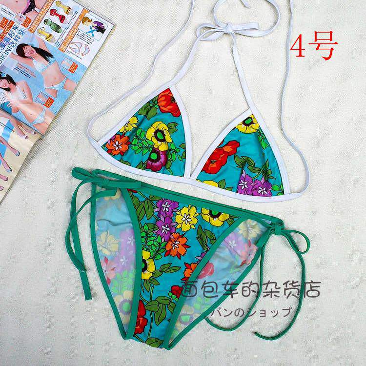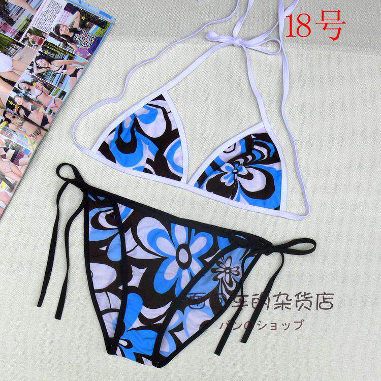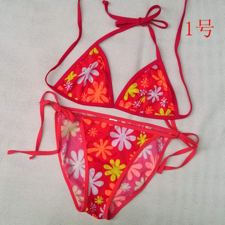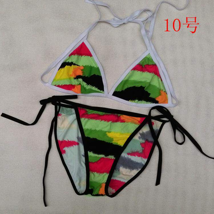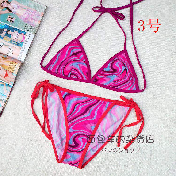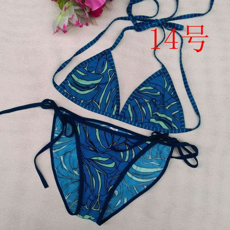 【质料】泳衣布 弹力料 (82%Nylon,18%Spandex) 【颜色】详看图片(以实物为准)有色差,有轻微染色 (带子上衣和裤子颜色不一样) 【尺寸】上衣:B杯偏大 围:系绳调节 无胸垫 不能加垫 裤子:系绳调节 不连带子 前23cm 后32cm 高25cm 合适 26~ 29码的MM 购买前物必须看清楚货物的码数