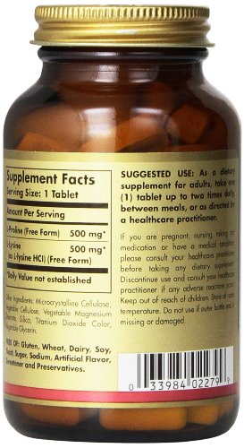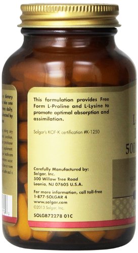 Solgar L-Proline/-Lysine Tablets, 500 mg, 90 Count