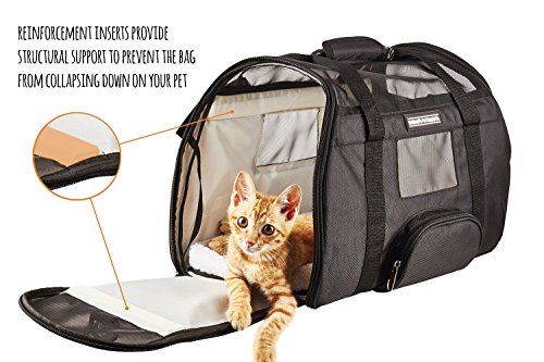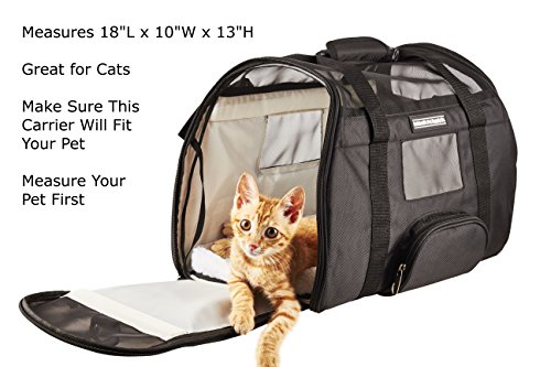 TSA APPROVED for under-seat requirements. Measures 18”L x 10”W x 13”H. With 360-degree mesh panels, your pet has proper air circulation for comfort and you have full visibility for peace of mind
