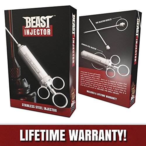 • A 100% MONEY-BACK GUARANTEE and LIFETIME WARRANTY - eliminate all risk so you can use Grill Beast's marinade injector kit with confidence! Your complete satisfaction is assured.