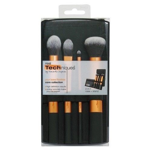 -. Binding : Misc. -. Brand : Real Techniques -. EAN : 0608166432408 -. Feature : Designed with pro makeup artists Sam + Nic Chapman, Real Techniques brushes combine high-tech materials with innovative design to make creating a pixel-perfect look easier than ever: . . - Synthetic bristles are ultra plush and smoother than the hair you'll find in other brushes. The bristles are synthetic which means all of our brushes are 100% cruelty-free. The soft fibers help create a flawless, high-definition finish in any type of light - from sunlight to harsh indoor lighting. . - The color-coded system corresponds to the key steps of makeup application so you can create a flawless base, enhanced eyes, and the perfect. -. IsAdultProduct : 0 -. ProductGroup : Beauty -. ProductTypeName : BEAUTY -. Title : Top Reted Real Techniques Core Collection Set -. UPC : 608166432408