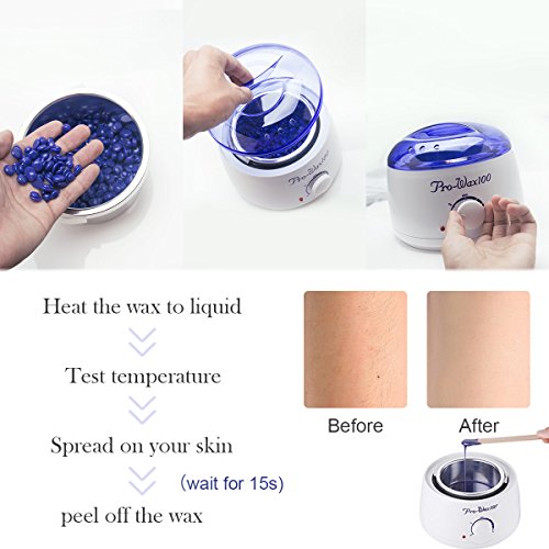 EASY TO OPERATE: Once the waxes are liquid, place the dial in middle place for keeping warm. And then place a small drop on your wrist to test temperature. If the temperature is ok, apply the wax to your unwanted hair. When the wax gets dry; tear it off from your skin in opposite direction of hair growth.